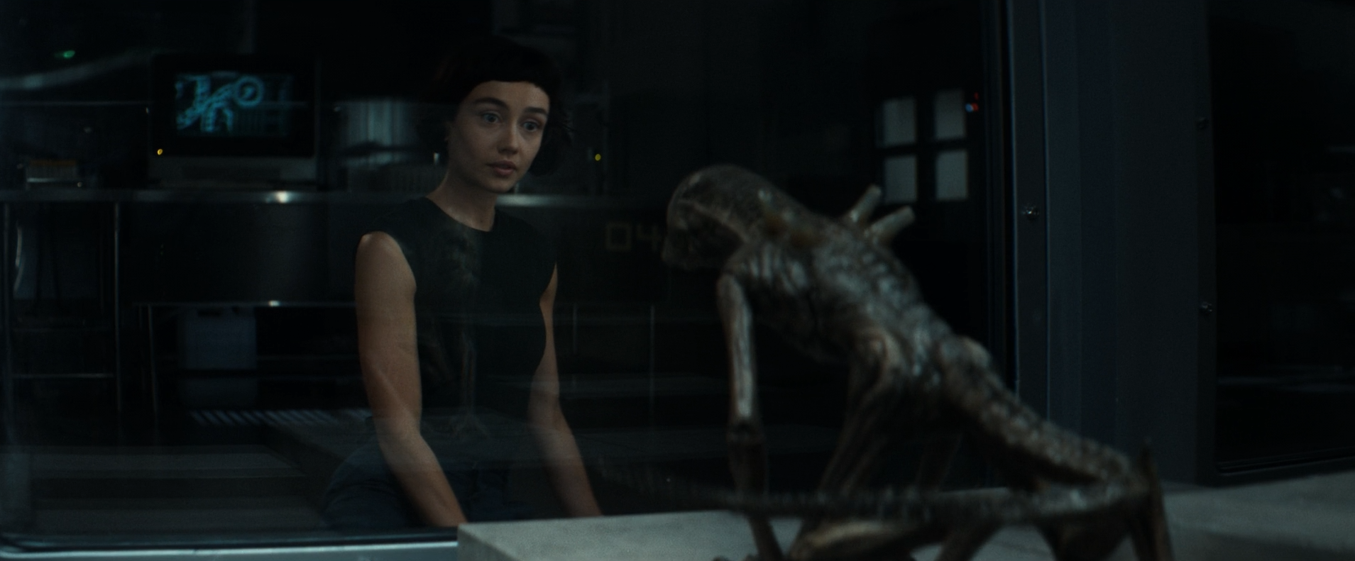 Todo esto intercalado con imágenes de Wendy hablando con el xenomorfito -va a crecer rápido- el Ojete Cabrón mirando y una extraña colmena que no habíamos visto hasta este momento -o por lo menos no me acuerdo de ella- con lo que me da la sensación de que vamos a ver más bichos raros de esos que nos crean traumas. Wendy parece haberse olvidado de que un bichomorfo de estos estuvo a punto de cargársela, no se ha preguntado de dónde salió el pulmón en el que se gestó la cosa esta y, bueno, que tiene un cariño maternal a la criatura bastante perturbador. Los xenomorfos son como los siluros, una especie invasora que se carga todos los ecosistemas que pilla sin ningún miramiento, con lo que creo que lo suyo es exterminarlos (porque dime tu si no dónde los metes); supongo que éso se le pasa a Wendy, que está muy obsesionada con su episodio con el escorpión y su derecho a la vida. Lo importante de la escena de Wendy hablando con el bichillo está en que la están observando Kirsh y Joe, con este último sondeando al otro sobre que mantenimiento necesita el cuerpo de Wendy cuando ya no esté en las instalaciones de Prodigy. Kirsh lo desprecia directamente diciendo que éso es como si una cebolla preguntara cómo podría hacerse cargo de una estrella, y Joe se va dando cuenta de que Prodigy nunca la soltará voluntariamente, que el potencial económico de la niña es enorme. Kirsh se lo comenta con desdén, casi con asco, como si fuera un delito pensar que tal vez Wendy quiera ser otra cosa que un superordenador con patas; ¿acaso quiere Kirsh montarse una revolución sintética o solo está defendiendo los intereses de sus programadores? Creo que todo el final de la primera temporada girará en torno a estas ideas, así que la conversación es importante.