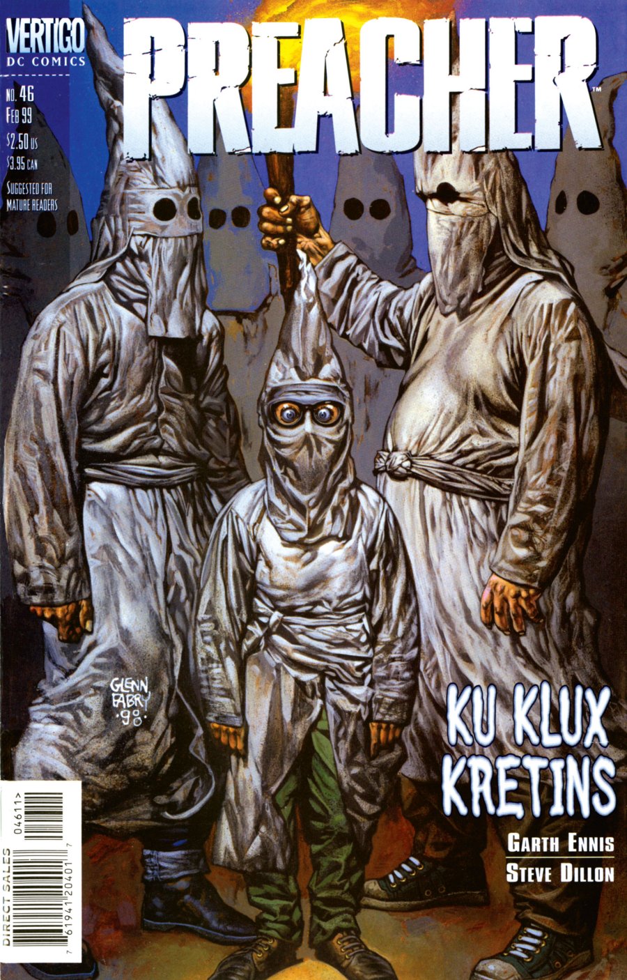 Para ser más concreto, se trata del número 46 de la serie, durante el arco argumental de Salvación, en el cual Jesse Custer se estaba tomando un descanso (más o menos) en el pueblo del mismo nombre, recuperándose de ciertos acontecimientos que le habían sucedido en los números anteriores. Un pueblo que se encontraba dominado por Odin Quincannon, un empresario sin escrúpulos y muy desagradable que había actuado con total impunidad hasta que Jesse se convirtió en el nuevo sheriff y decidió plantarle cara. Algo a lo que Quincannon quiso responder reclutando la ayuda de sus camaradas del Ku Klux Klan…