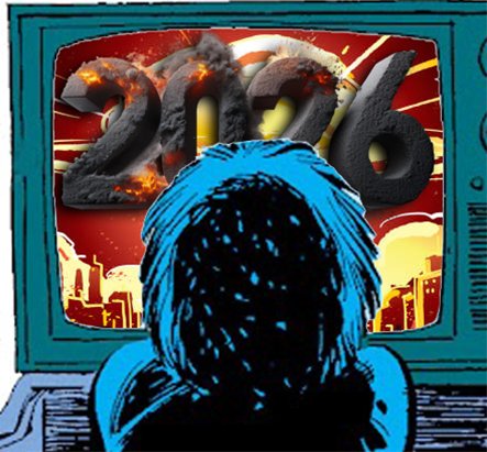 Me da más miedo esa pantalla de televisión con el 2026, que la de la película poltergeist con la niña acercando la mano.