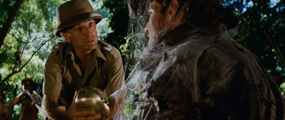 La saga de Indiana Jones tiene mucha gracia porque no presenta un héroe perfecto. Muestra a un pelagatos al que las cosas le salen mal por su propia incompetencia y pocas luces; pero que por cabezonería, suerte y la magia del guión, consigue resolver, a trompicones y muchas tortas de las que se cura en el plano siguiente, situaciones imposibles.